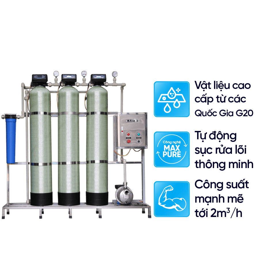 Bên cạnh việc xử lý hiệu quả tạp chất, kim loại nặng, máy lọc nước đầu nguồn Karofi dòng này còn có khả năng làm mềm nước sinh hoạt, xử lý tính cứng hiệu quả.